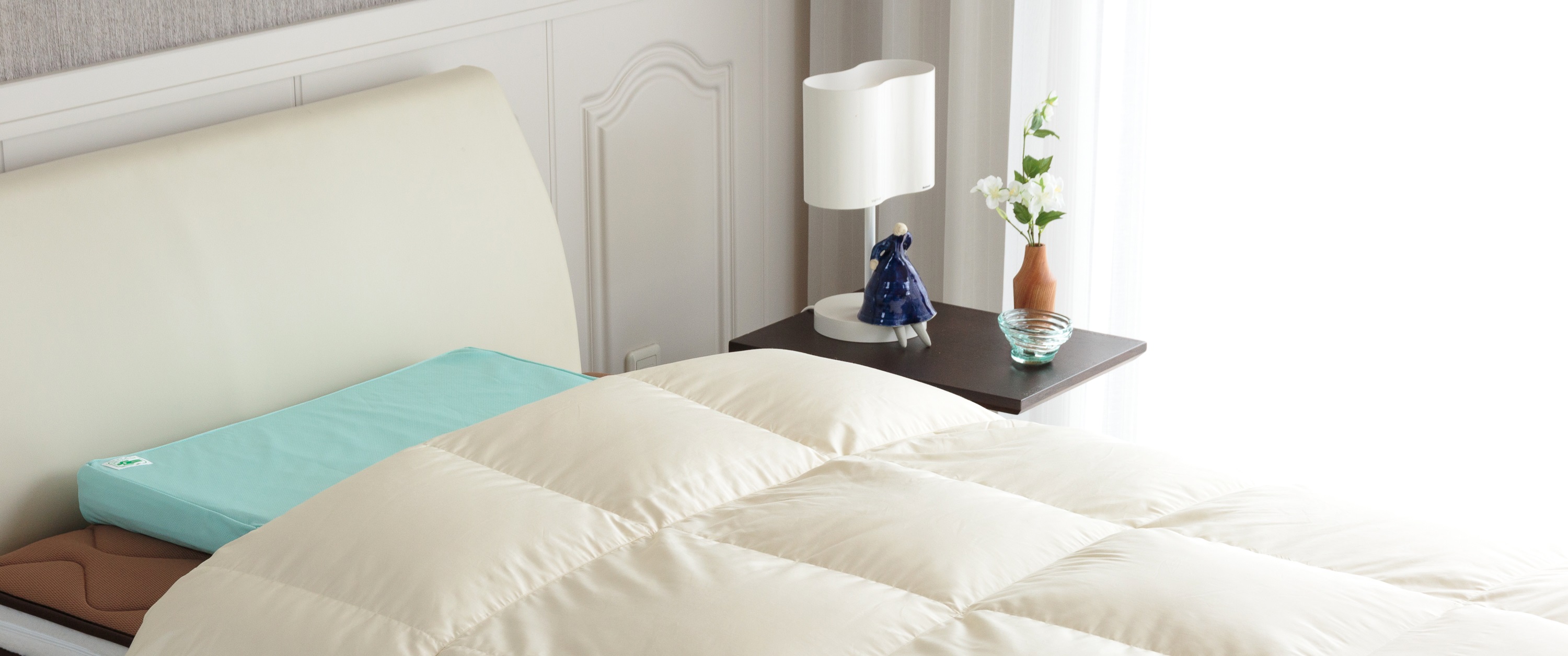 「16号整形外科」の枕外来で山田朱織医師は、枕の指導とともに、敷物、掛物、パジャマなど多岐にわたるご指導を患者様へ行ってまいりました。枕はいち早く問題が大きいと判断し、指導内容の確立とともに、医療機関では取り扱いのできないオーダーメイド枕を計測・販売するため、山田朱織枕研究所を設立いたしました。敷物、掛物、パジャマも「寝返り」を阻害する要因で、当社では順次新商品を開発しています。「寝返り」を阻害しないために、軽い「羽毛布団」はお勧めです。今回商品として整形外科かけふとんを取り扱うことで、より多くのお客様、患者様に「寝返り」のためのかけふとんをご体感いただける機会を増やすことができ、「寝返り」の重要性が広く伝えられるのではないかと期待しております。